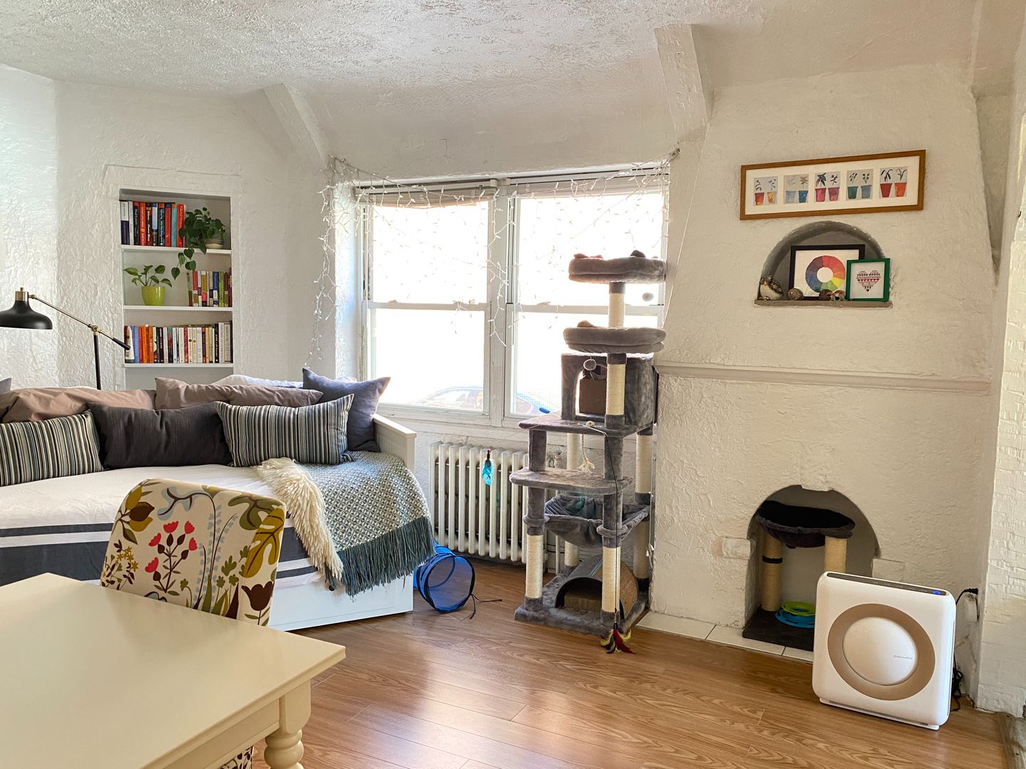 Living rooms also have cute built-in fireplace (decorative)! There are a lot of windows in the kitchen, living room, very light and bright, HUGE walk in closet in the living room!