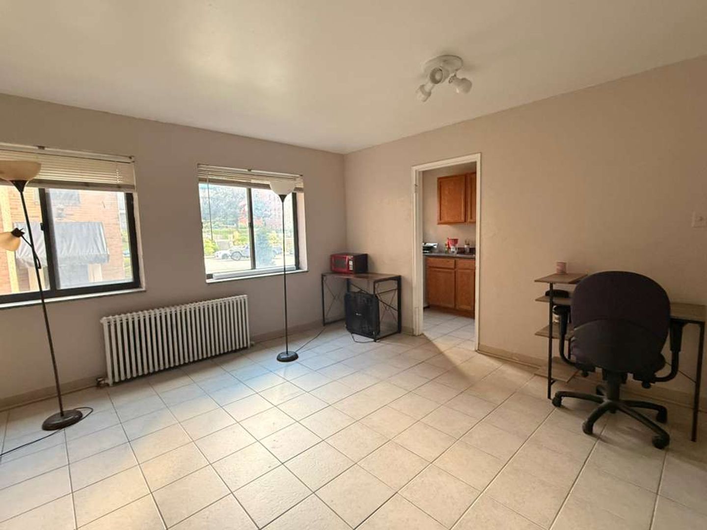 Each apartment contains a large master bedroom with a large double wide window and a smaller second bedroom, which single people use as an office or den. The second bedroom is smaller but does fit a double bed, night stand and chest or set of drawers. Please note the photos of the living room/kitchen/bathroom are of the exact unit number, but bedrooms may be example photos from another unit. Every unit has same size bedrooms, only difference would be if the smaller bedroom has one or two windows.